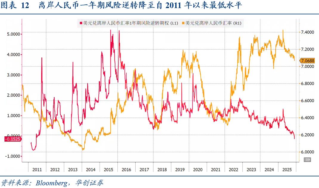 (十)离岸人民币1年期风险逆转期权降至2011年以来最低水平