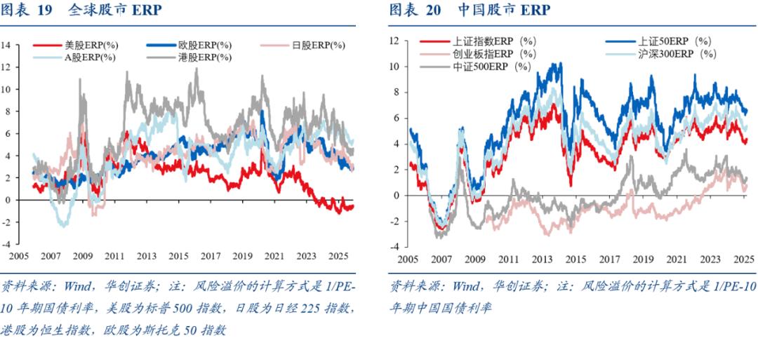 宏观层面,全球主要股票市场的估值通常与盈利能力呈正相关。然而,当前市场出现了明显的结构性分化。其中,美国股市表现出极高的估值溢价,其18.2%的ROE水平获得了超过5倍的市净率,远超趋势线。相比之下,中国、韩国等地的股市估值则与其盈利能力基本匹配,处于趋势线附近。具体来来看,过去一年中国股市的ROE均值为10.1%,对应的是市净率为1.66倍;韩国股市的ROE均值为7.2%,而市净率为1.01倍。