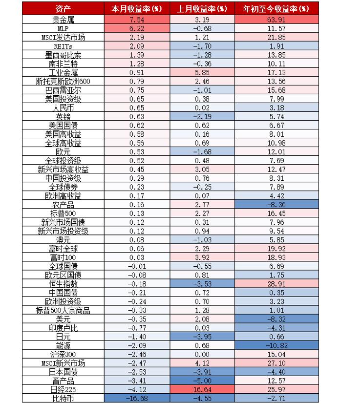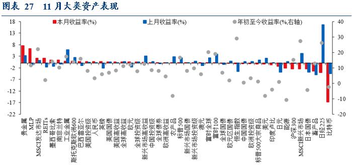 根据2025年11月的美国银行全球基金经理调查,全球基金经理环比增加了在医疗保健、债券、必选消费、银行、美元以及现金上的仓位,同时降低了在可选消费、通信、工业、英国和欧元区上的仓位。与此同时,全球基金经理在医疗保健、新兴市场、银行、股票和商品上超配最多,在英国、能源、可选消费、REITs和美元上低配最多。