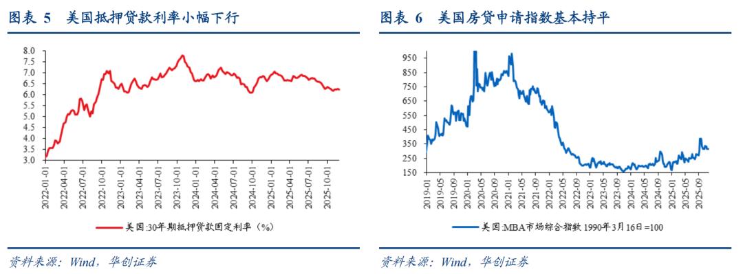 抵押贷款申请指数基本持平。11月21日当周,美国MBA市场综合指数(反映抵押贷款申请数量)为317.6,环比0.2%,前一周环比-5.2%。