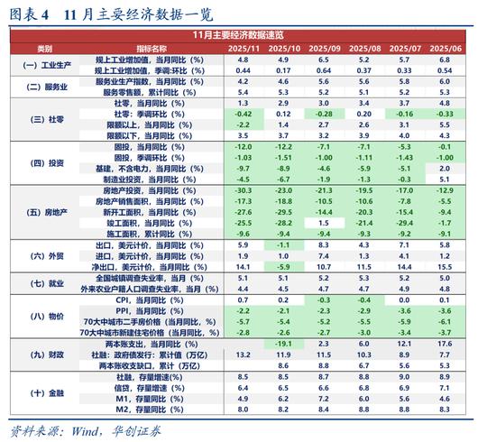 分产品来看,建筑链依然偏弱。11月,粗钢产量同比为-10.9%,生铁同比为-8.7%,水泥同比为-8.2%,原煤同比为-0.5%。有色金属产量增速回升,同比为4.7%,前值为2.9%。集成电路、工业机器人、新能源汽车增速较高。 据统计局解读,“从产品看,‘人工智能+’高速发展带动存储芯片、服务器等产品产量分别增长45.7%、22.7%;具身智能、脑机接口等新经济增长点助力机器人领域快速发展,工业机器人产量增长20.6%。”